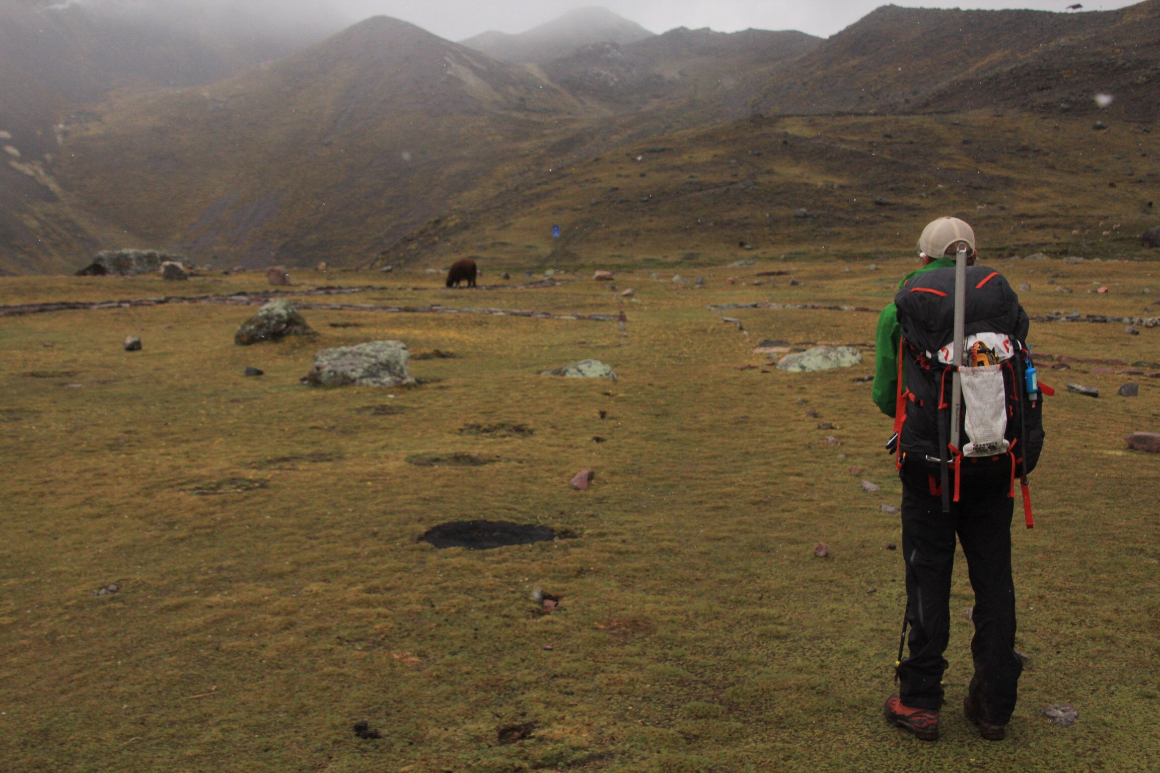 When we started hiking it began to rain, and that quickly turned to aggressive snow. On the hike out we could barely see more than 100 feet in front of us, but on a clear day the Ausangante trek is absolutely beautiful. Honestly one of the most beautiful places I’ve ever seen in my life. In the high season, this trek is very popular. The trek follows the valley all the way around the Ausangante massif. But it’s shoulder season for tourism now. The weather is starting to get bad and it’s kind of a weird time of year to travel. Apart from the few llama herding huts we saw, we were completely alone, just us and the mountains.
