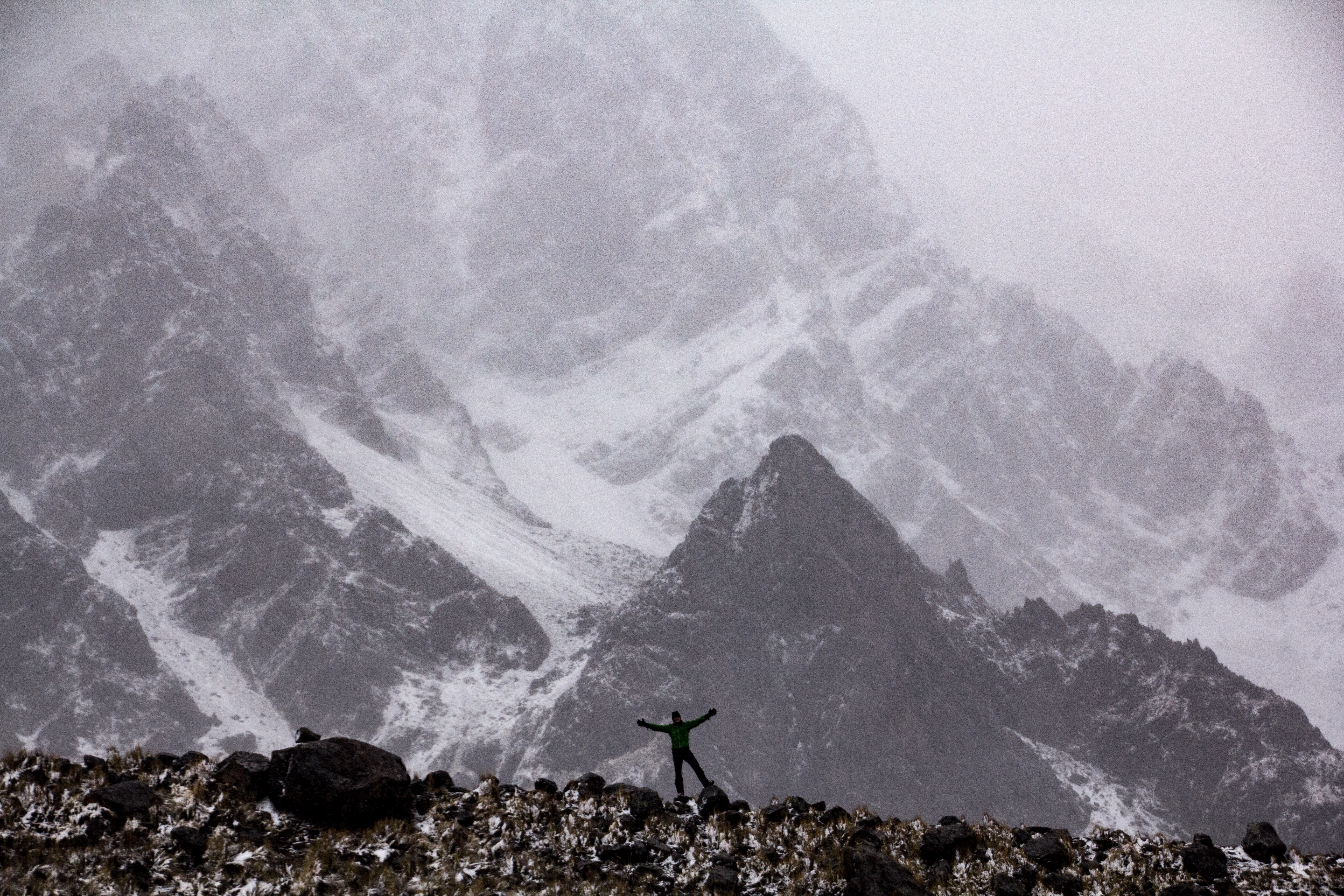 6 miles later through miserable snow and wind we set base camp up at 16,000 feet. A few of the surrounding mountains began to peak out from the clouds, stunning us with how magnificent they were. The largest, most beautiful glacial peaks I had ever seen in my life.