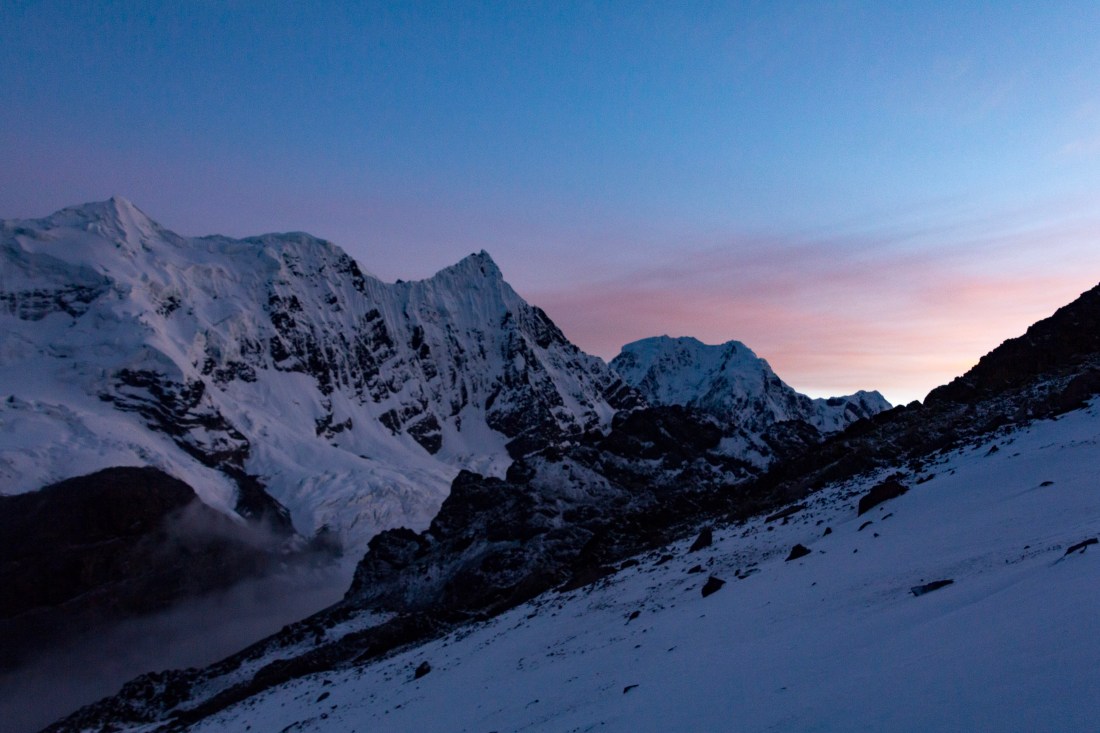 But we weren’t in Tinki to hike the Ausgante trek. We were here to climb Nevado Jampa, an 18,000 foot peak easily accessible from the trek. This climb is not that hard, in fact it’s one of the easiest snow climbs in the Cuzco region. This climb wasn’t about bragging rights. It was an acclimatization climb to have the chance to get up high and get our climbing legs moving again, before our big guided climb this coming weekend. It was a suggestion from a guide we met in Cuzco. Nate Heald is one of the only climbing guides in Cuzco. I found Nate online, and after a hour long meeting at his house last month, the three of us decided on a big climb, a sub peak of Salkantay, near Machu Picchu. Nate has been up north for the last month climbing in the famous Corderilla Blanca, and suggested we head out to Jampa before he got back. So it was also our first climb alone. This is a big deal. We now had to make extremely important judgment calls-calls that mean life or death, at the ripe age of 18.