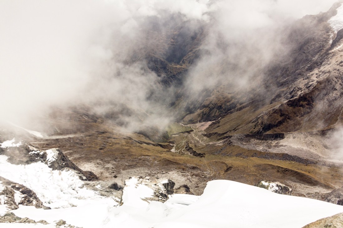 On the way down we did a combination of down climbing and rappelling. Due to my inexperience with rappelling and the fact that the route down was incredibly gnarly, AND it started to snow, it took us a long time to get down. We were rappelling down the other side of the mountain, into the Ahobamba valley. I have to say, heading down the mountain was not exactly super pleasant.