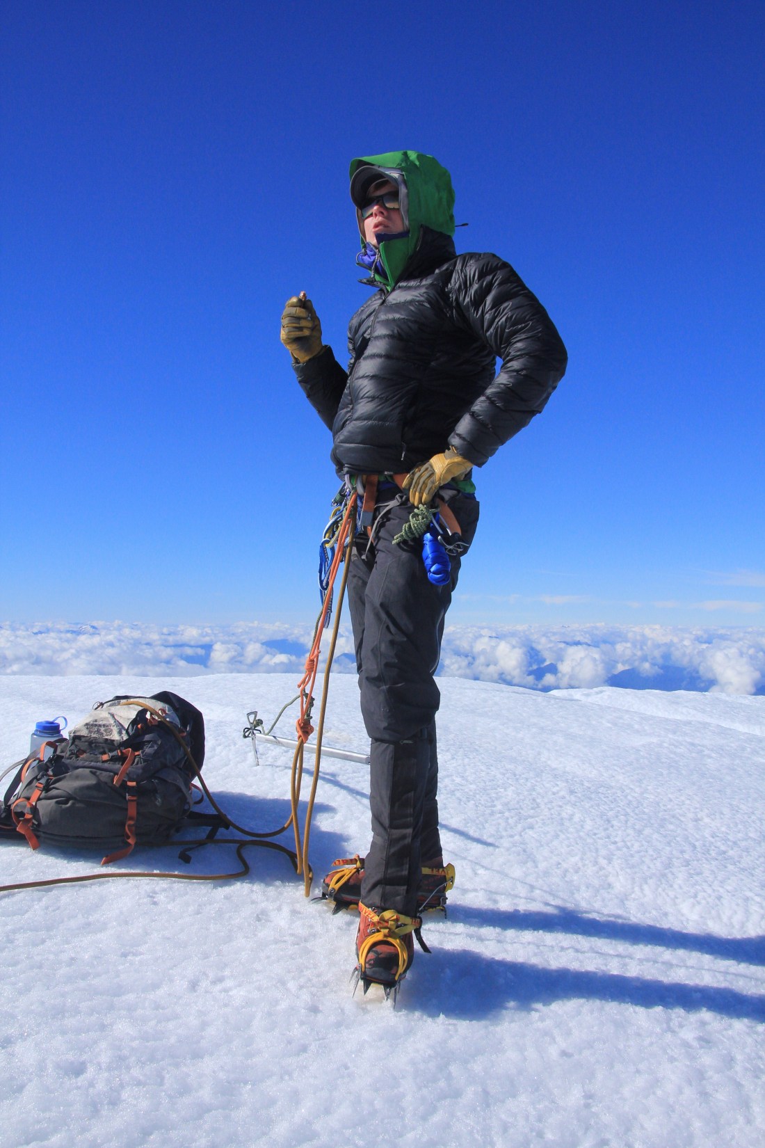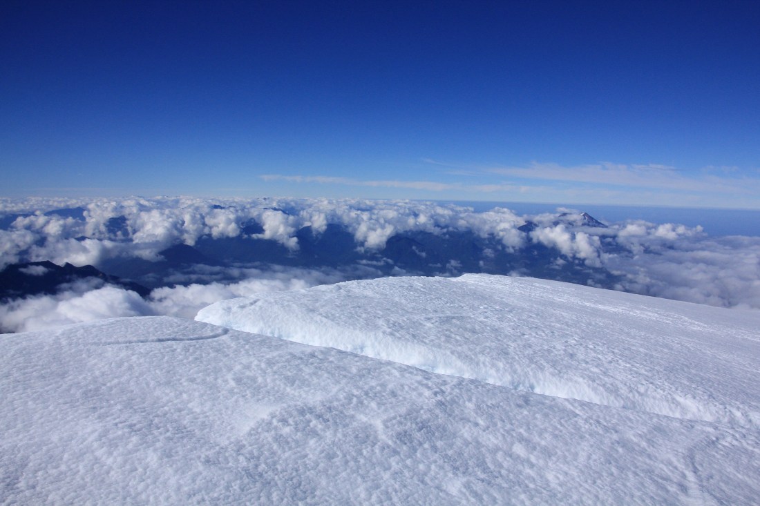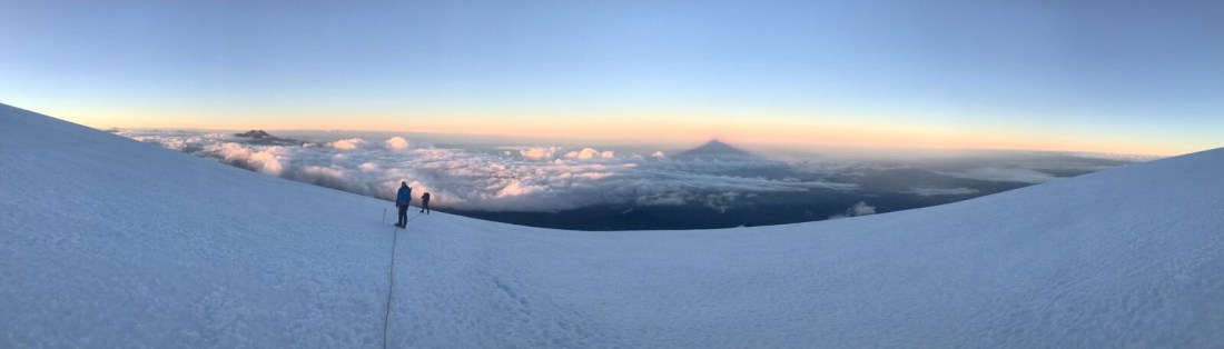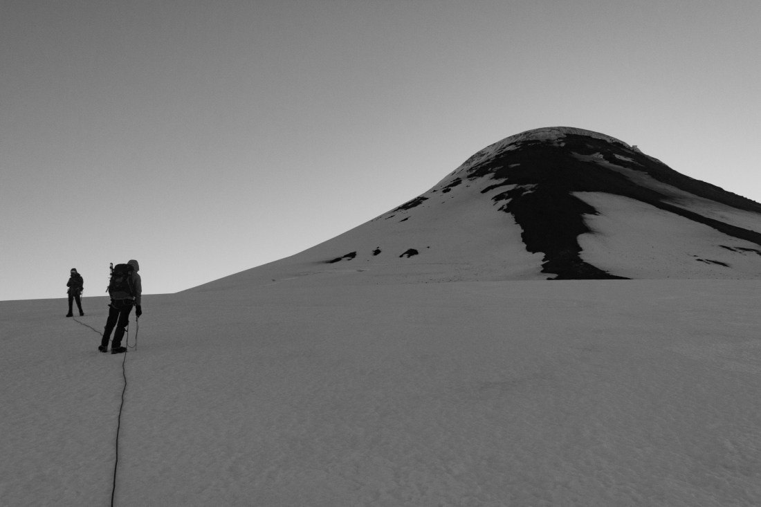 Osorno required us bring protection for the steeper sections. We had three snow pickets and two ice screws. We were quite lucky in that the snow was incredibly firm, much of it was even alpine ice. Amazing climbing conditions. Because of the snow and ice conditions, we didn’t feel the need to rush.